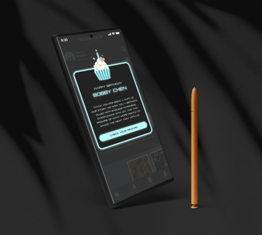 In this project, the mobile app is designed to portray a space-inspired theme, enhanced with glowing elements across the interface. This introduced a key challenge, as I needed to conduct in-depth research on animations to meet the stakeholders’ vision while ensuring the app remained lightweight and optimized for performance