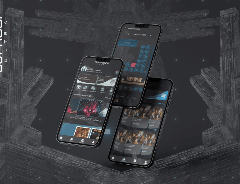 The overall theme follows a space-futuristic-Tron style, consistently applied across the club’s interior design and even reflected in the food menu. For the MVP, the key features we developed include: