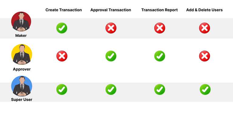 We designed this system for three types of users: the first as the Maker, the second as the Approver, and the third as the Master. By separating these roles, we ensure that every transaction is both secure and easy to monitor